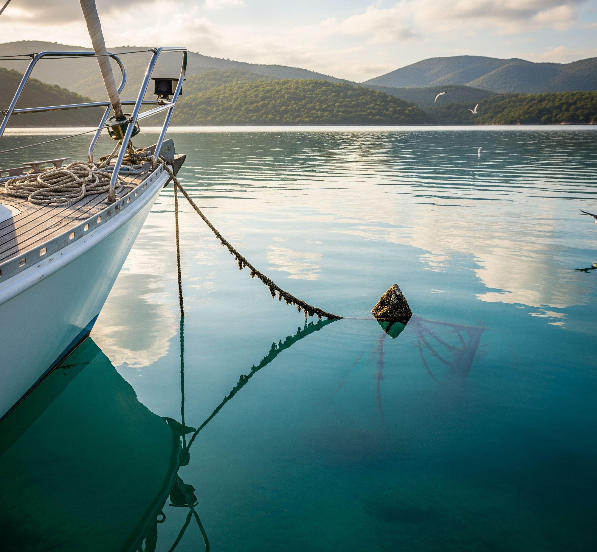 • Triple Anchoring (Star Mooring): Three anchors are spaced 120° apart, creating a highly secure mooring that’s ideal for stormy conditions.